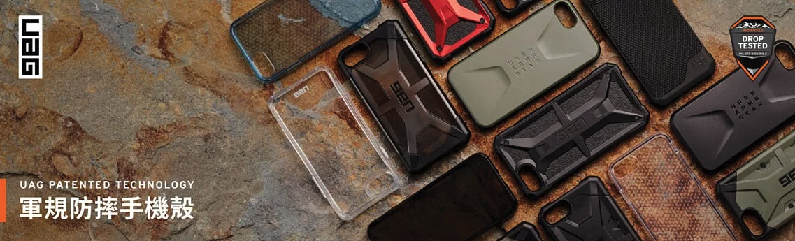 美國品牌 UAG(Urban Armor Gears)由 2010 成立至今,以 研發與生產強大保護能力的手機殼為主。為了保護手機即使在極端環境下也不 受到損壞、所有系列的產品在研發階段都進行了美軍的 MIL-STD-810 測試。其粗礦的外型與超強的防摔能力,收到許多年輕族群的青睞。