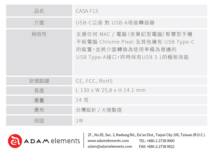 *此賣場為 USB Type-C 對 USB 轉接器 (短線) * | ||