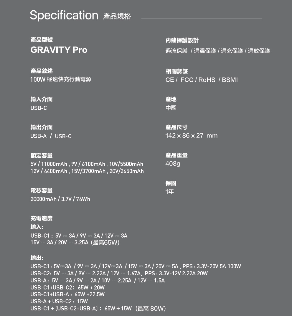 *此賣場為 GRAVITY Pro 100W極速快充行動電源* | ||
