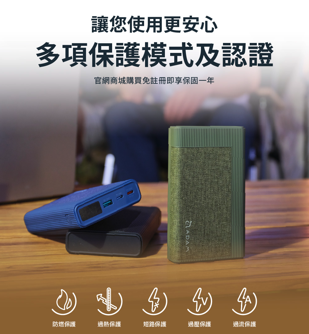 • 20000毫安培大容量行動電源,特殊止滑外觀設計,獨特的布面材質,提升整體設計感。
