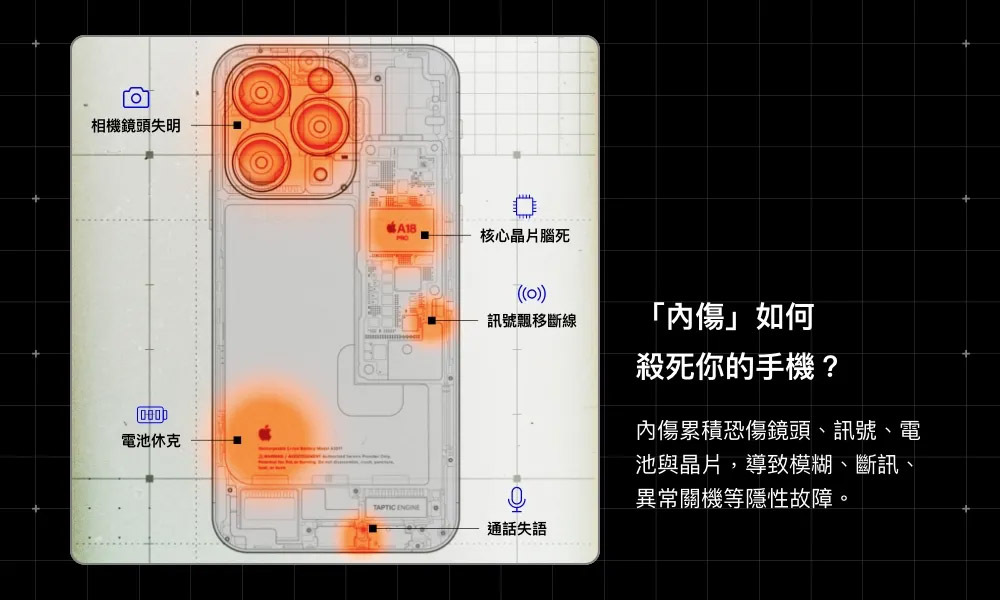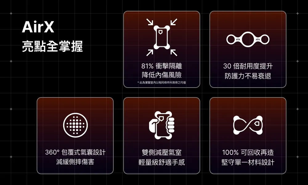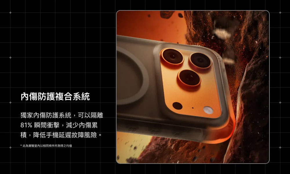 本產品提供日常生活中的防摔保護,降低機體在遇到撞擊時候的破損機率,因此我們無法保證本產品在任何情況之下絕對保護您的裝置不受損壞,同時請避免自行進行落摔測試。