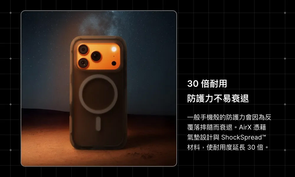 A:犀牛盾AirX 可支援Apple MagSafe配件、無線充電盤的無線充電功能。