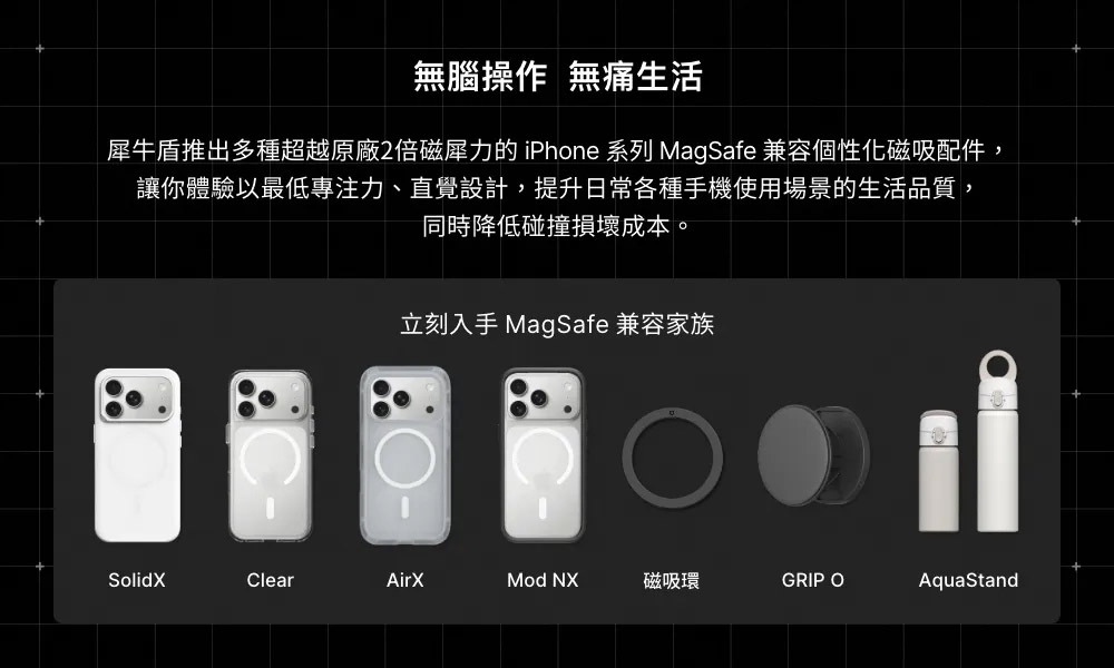 Q:犀牛盾AirX 是否能搭配原廠MagSafe配件使用?
