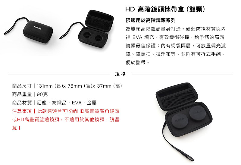 | 注意事項: | *此商品僅適用 HD 高階廣角、望遠鏡頭 不適用於其他鏡頭,購買前請確認 |