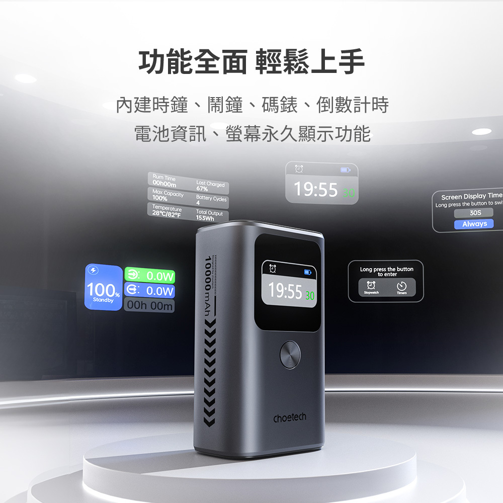 內建時鐘、鬧鐘、碼錶等功能,直覺操作引領行動電源新革命