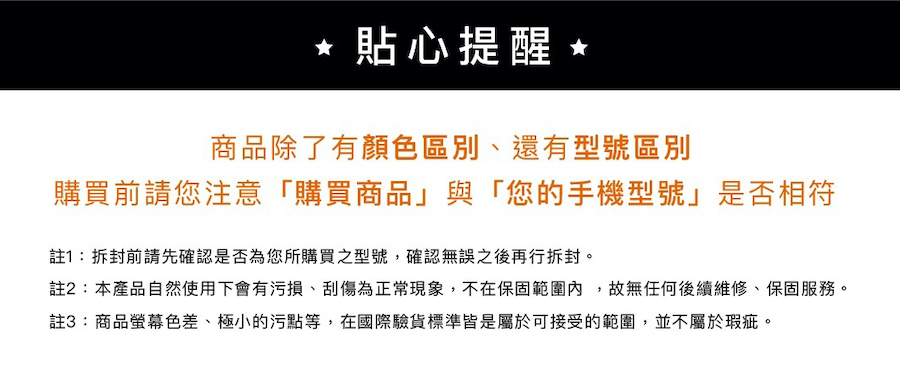 ※請消費者下單時,再次檢查購買的型號及顏色,避免換貨冗長的過程,謝謝!