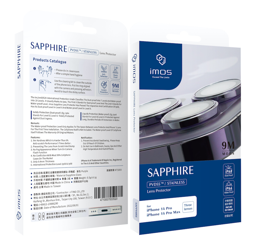 imos 鏡頭貼 iPhone 14 Pro / 14 Pro Max 共用 - 紫 (不鏽鋼材質)