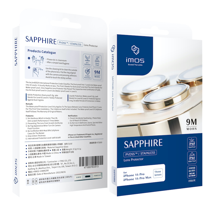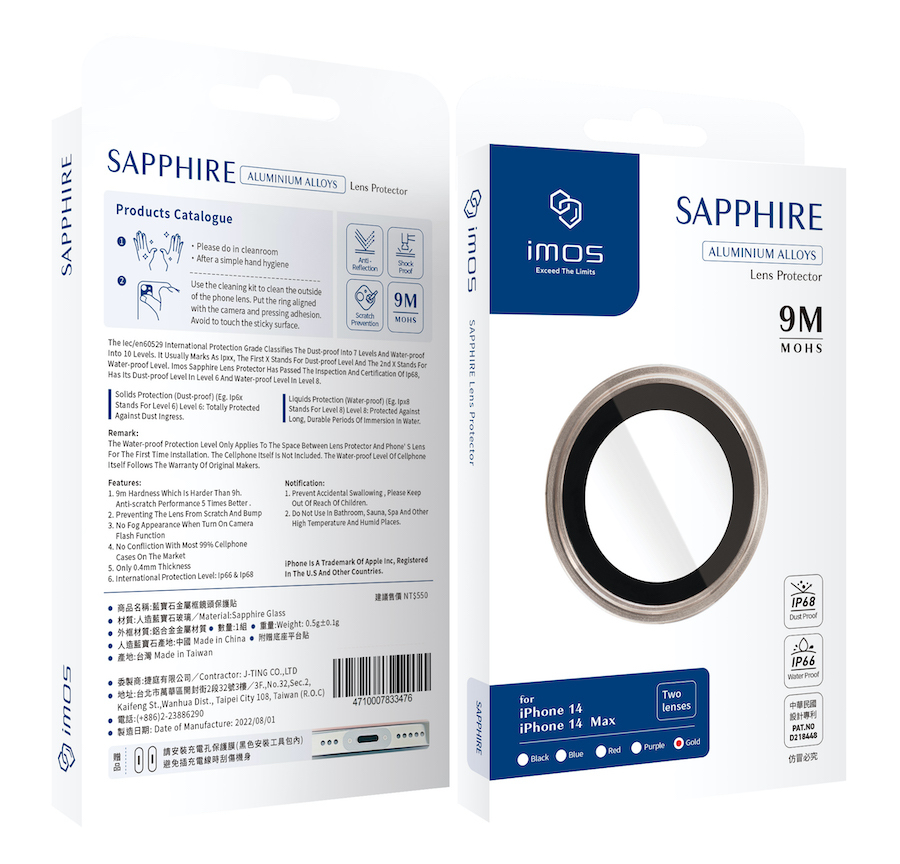 imos 鏡頭貼 iPhone 14 Pro / 14 Pro Max 共用 - 金 (不鏽鋼材質)