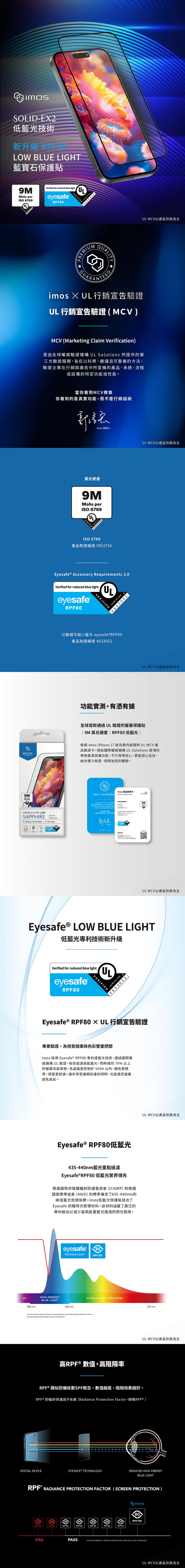 imos|iPhone 17 系列 / Air 9M 藍寶石+低藍光保護貼 RPF80 Sapphire Gaming Glass