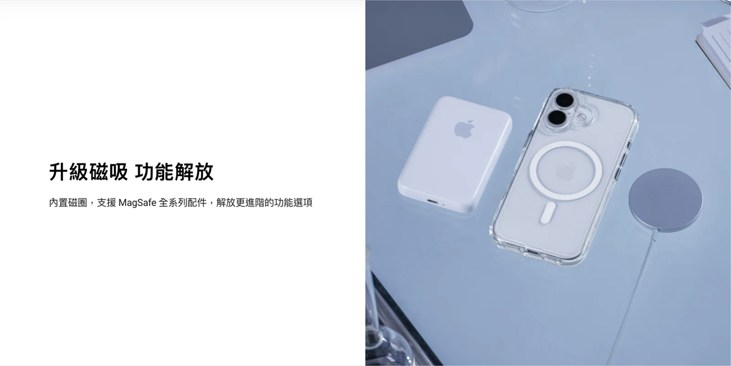 升級磁吸 功能解放:內置磁圈,支援 MagSafe 全系列配件,解放更進階的功能選項