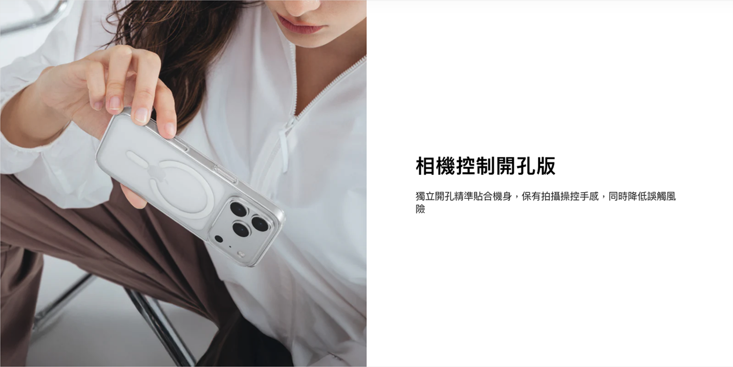 相機控制開孔版:獨立開孔精準貼合機身,保有拍攝操控手感,同時降低誤觸風險