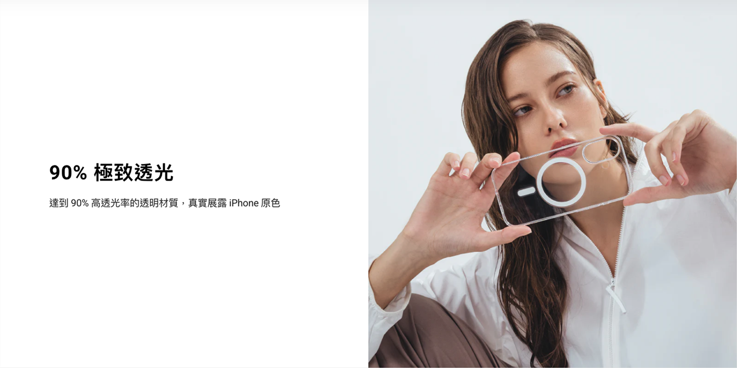 90% 極致透光:達到 90% 高透光率的透明材質,真實展露 iPhone 原色