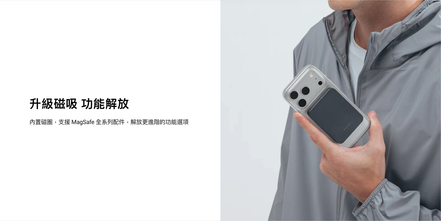 升級磁吸 功能解放:內置磁圈,支援 MagSafe 全系列配件,解放更進階的功能選項