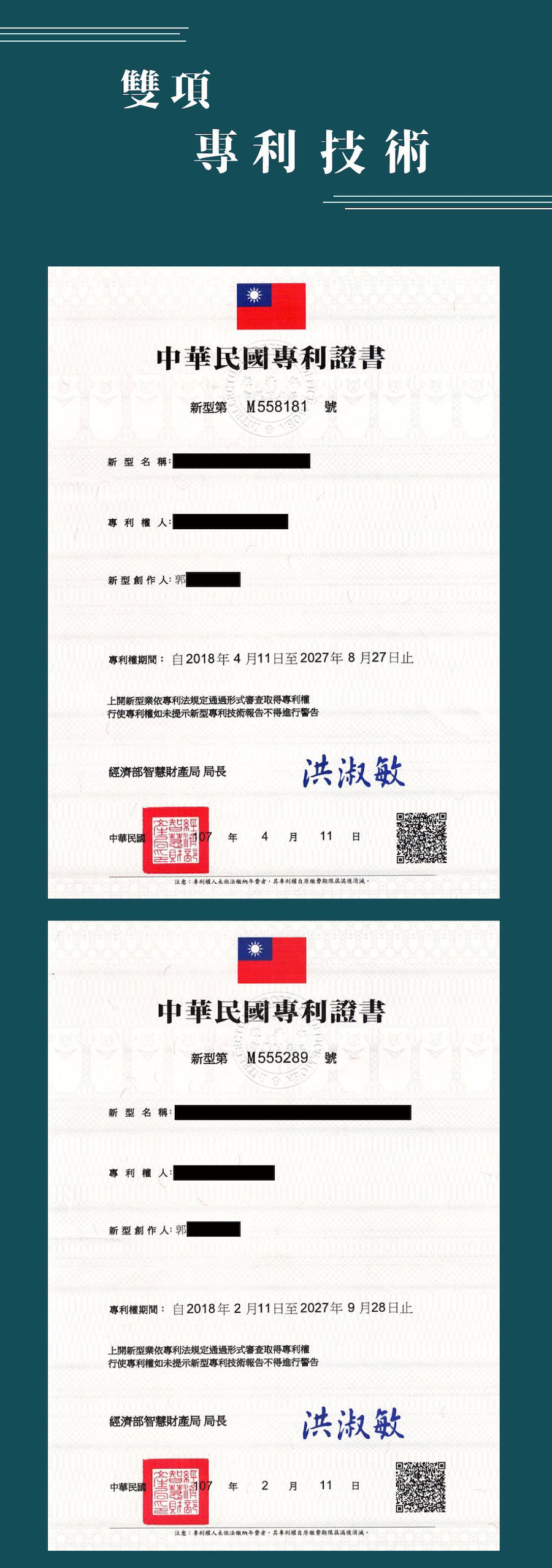 ● 專利技術M558181號