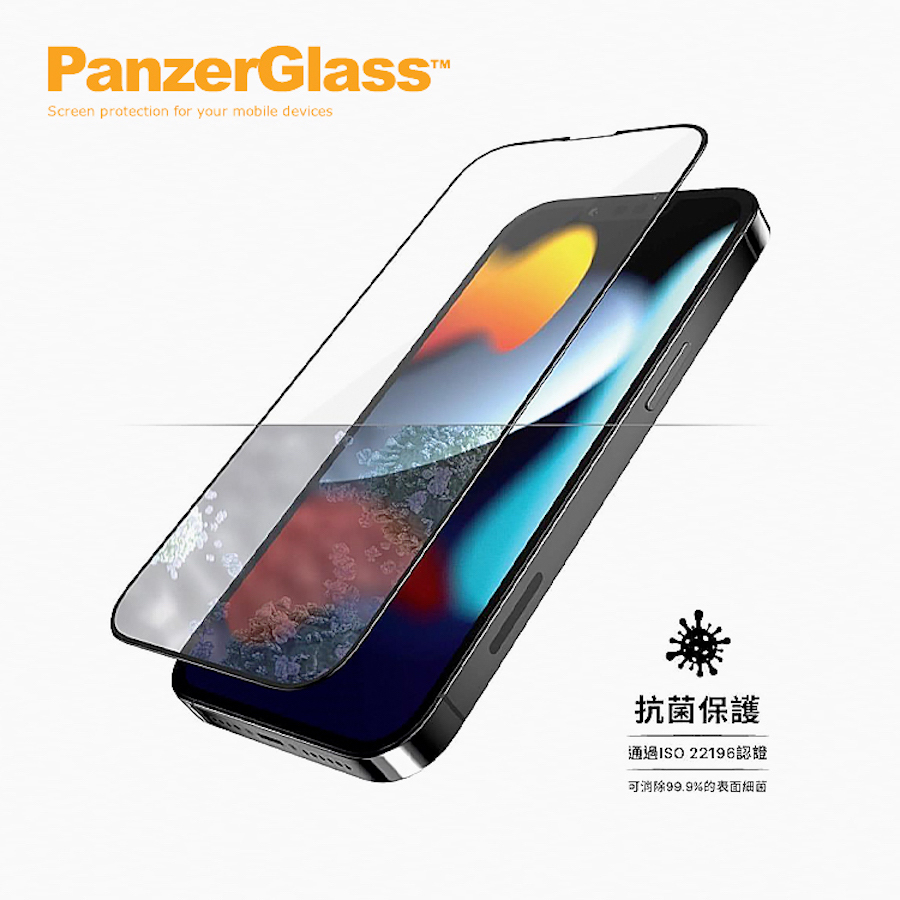 適用於 iPhone 13 的 PanzerGlass™ 屏幕保護膜帶有抗菌塗層,具有與原始 PanzerGlass™ 相同的功能,可保護您的屏幕免受刮擦和碰撞,這種玻璃塗有活性抗菌物質,使其能夠抵抗細菌和真菌孢子。抗菌成分可殺死玻璃上的細菌和真菌孢子,並保護您作為用戶的安全。