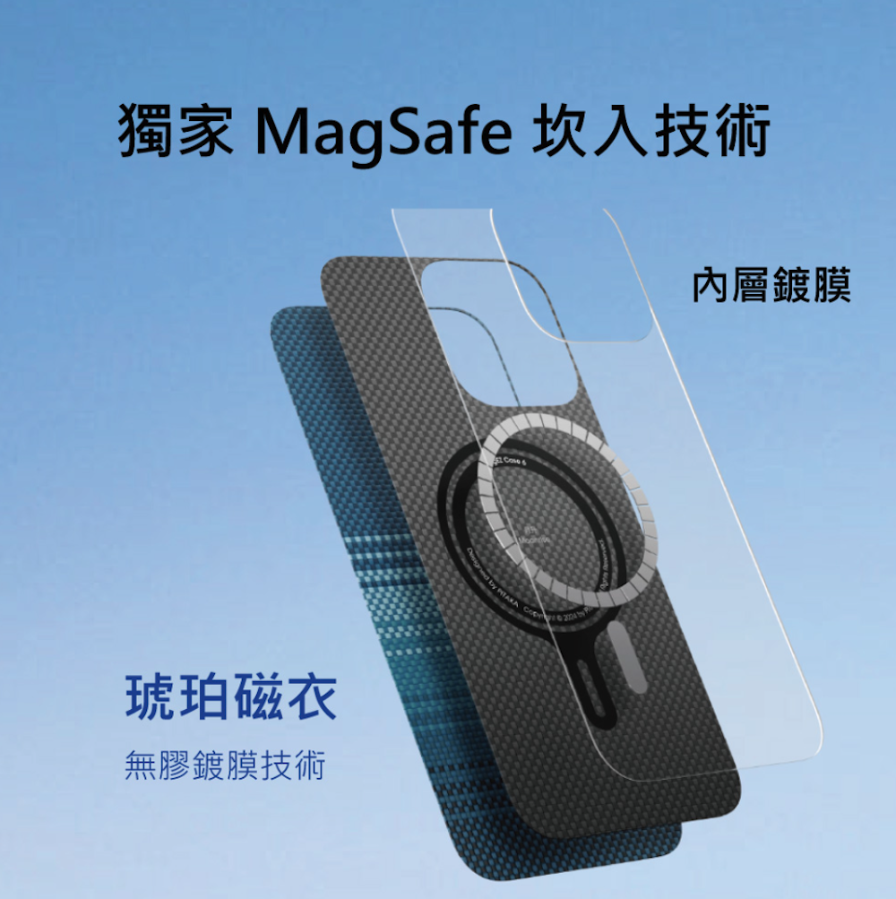 ‧ 琥珀磁膜技術,磁環與手機殼無縫集成,同時使手機殼更薄更輕。