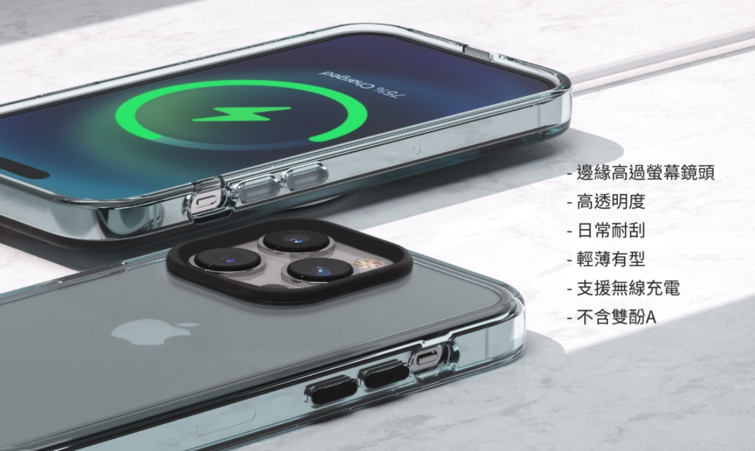 手機殼 (透明) 、鏡頭框 (黑) 、按鍵 (透明)