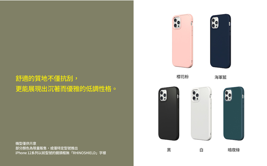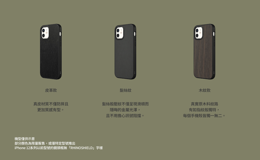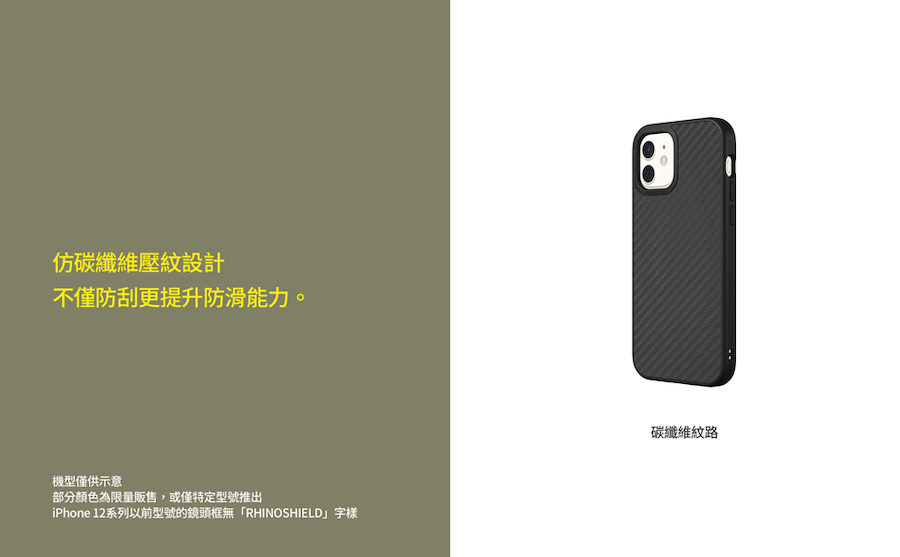 - 免責聲明: 我們誠摯建議將這款產品搭配犀牛盾抗衝擊螢幕保護貼使用,以達到最完整的防摔保護。儘管手機殼可以在大多數使用情況下保護你的手機,螢幕仍有極小的機率會在落摔過程撞擊不平整表面,而造成手機裝置的損傷。