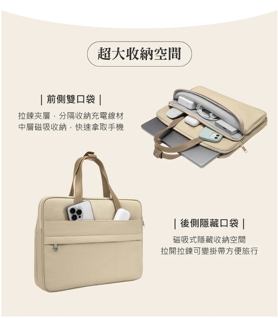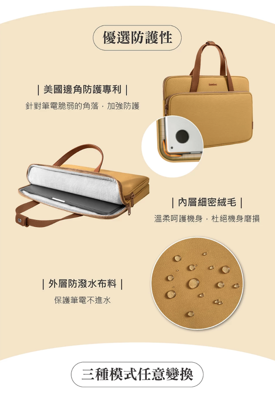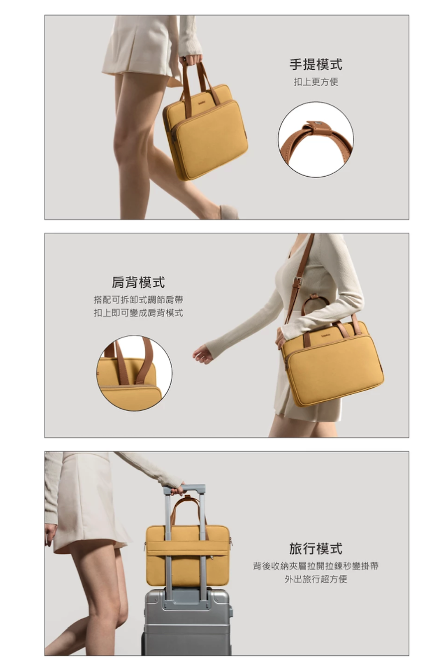 tomtoc 全新款旅行日記筆電包,新秋冬配色,搭配簡約外型! 增厚材質但輕便的防震設計巧思,讓電腦於外出旅遊或是長途辦公時都能時刻被保護,免除刮傷、碰撞損害筆電的煩惱。