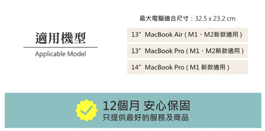 14"MacBook Pro( M1適用) 13"MacBook Pro 2016後(M1、M2適用) 13"New MacBook Air 2018後(M1、M2適用) |
