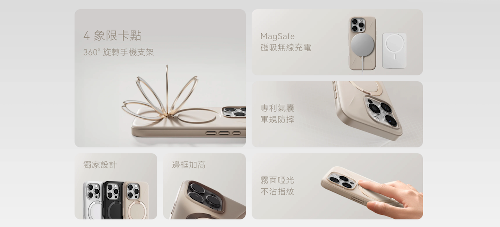 ■ 無線充電+磁吸+手機支架+防摔指環扣於一身,日常使用超便利