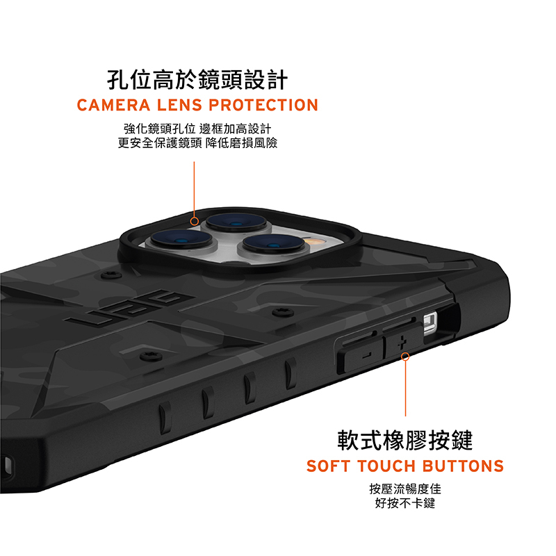 ‧ 強化鏡頭孔位,邊框加高設計