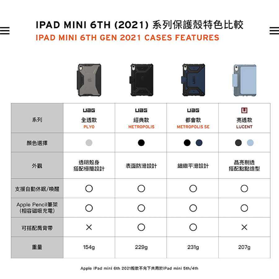 *此賣場為 UAG mini 6 METROPOLIS SE 都會款保護殻 *請認明原廠公司貨 *本公司為授權經銷商 * 建議使用UAG iPad 專用保護貼* |