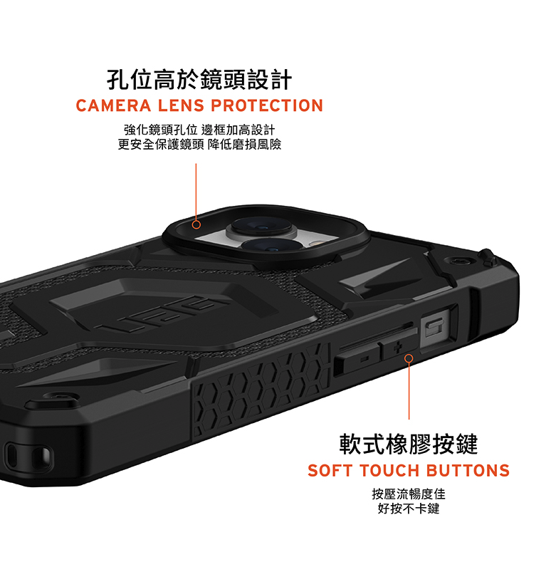 ‧ 強化鏡頭孔位,邊框加高設計