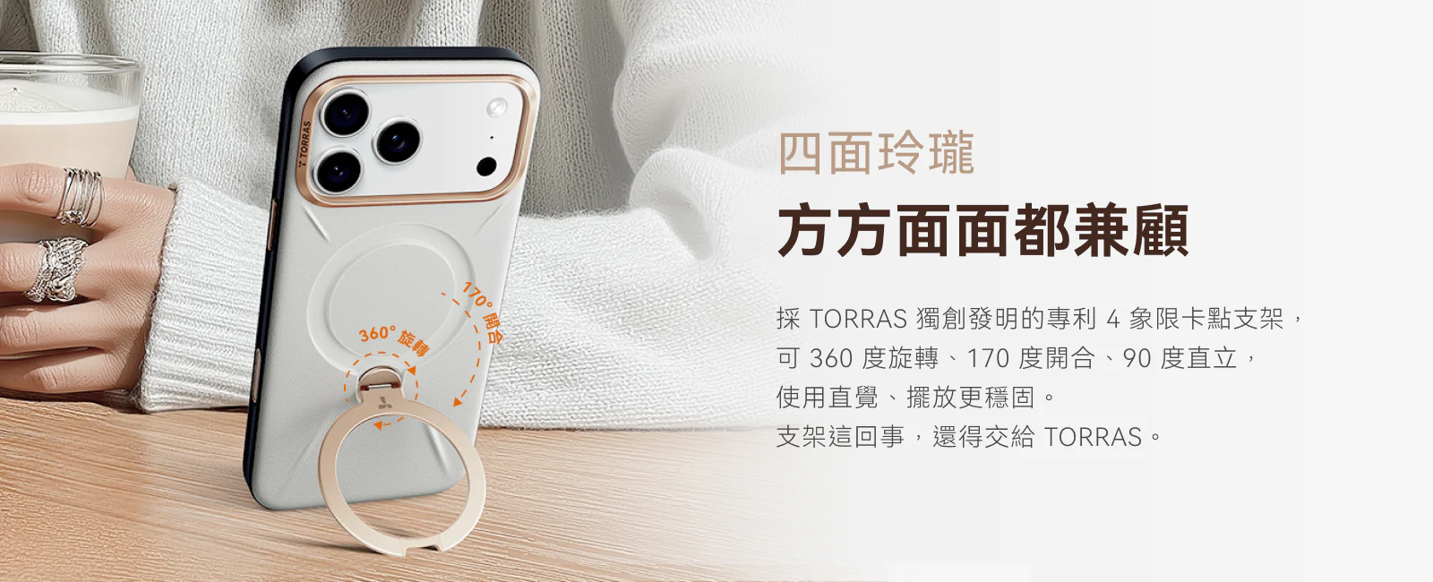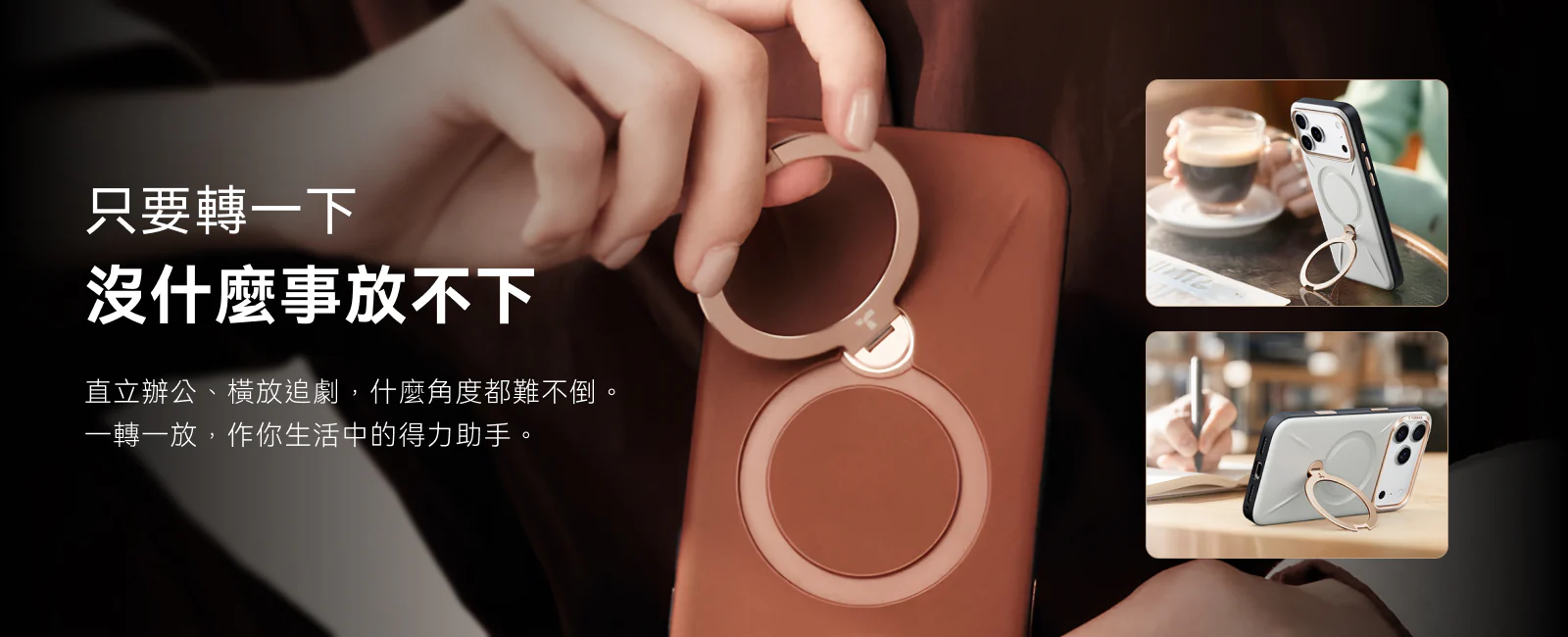 首創 4 象限旋轉支架,令手機90°直立,擺放更穩定、無線充電更順暢
